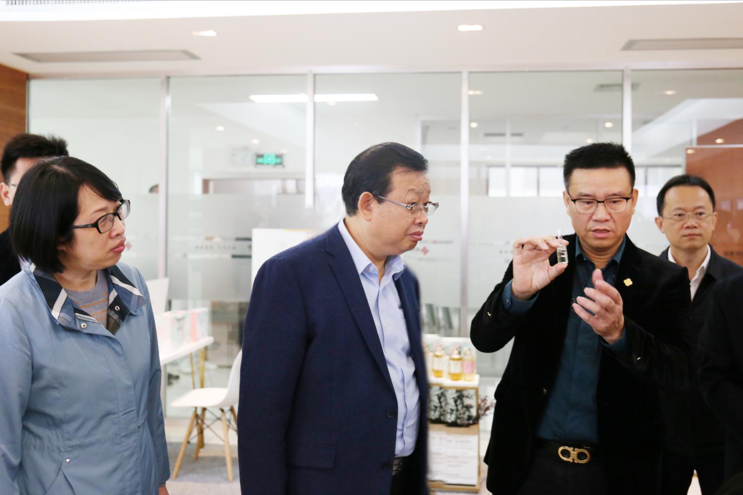 在和桂源生堂與廣西中醫(yī)藥大學(xué)共建的聯(lián)合研發(fā)實(shí)驗(yàn)室,廣西中醫(yī)藥大學(xué)譚強(qiáng)教授向李彬副主席詳細(xì)匯報(bào)了廣西中醫(yī)藥大學(xué)與和桂源生堂合作聯(lián)合研發(fā)中心的科研成果和方向。李彬副主席著重強(qiáng)調(diào),和桂源生堂作為廣西化妝品行業(yè)的龍頭企業(yè),與廣西中醫(yī)藥大學(xué)開(kāi)創(chuàng)的校企聯(lián)研模式值得推廣,要持續(xù)做好產(chǎn)品質(zhì)量管理工作,為打響廣西品牌,走向全國(guó)作出貢獻(xiàn)。
