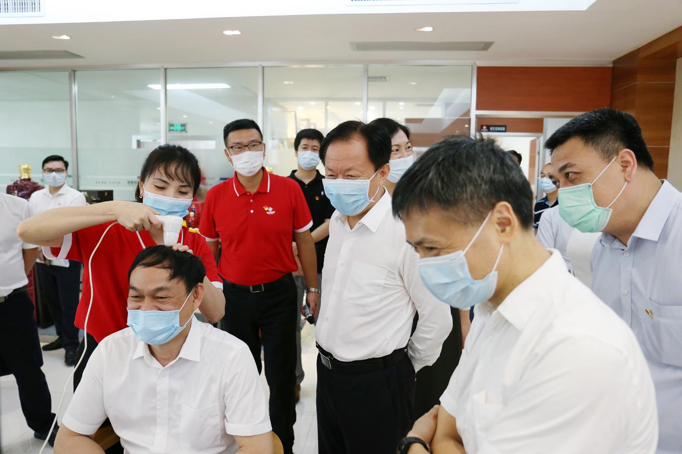 在文化展廳,徐紹川部長(zhǎng)參觀體驗(yàn)了源生堂自有專利頭皮健康檢測(cè)儀,表示和桂源生堂在科技創(chuàng)新方面已經(jīng)邁出了堅(jiān)實(shí)的一步,希望企業(yè)要加強(qiáng)自主知識(shí)產(chǎn)權(quán)的研發(fā)和保護(hù),不斷加大科研力度,以科技創(chuàng)新驅(qū)動(dòng)企業(yè)更快更好發(fā)展。
