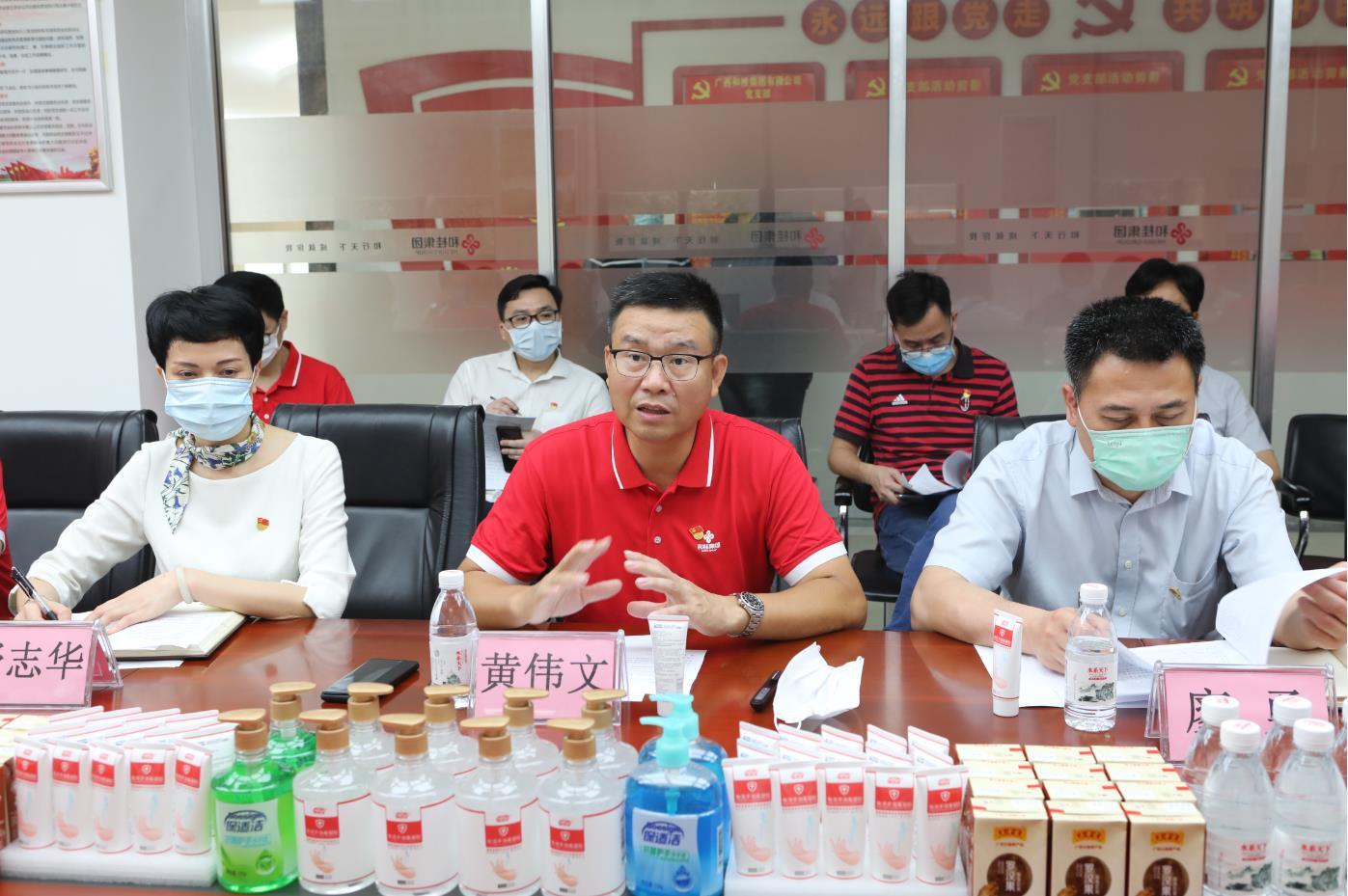 在黨支部會(huì)議室,徐紹川部長(zhǎng)聽取了黃總作的企業(yè)防疫抗疫和復(fù)工復(fù)產(chǎn)工作匯報(bào),黃總在匯報(bào)中希望政府能在資金、采購(gòu)、科研方面給予支持。