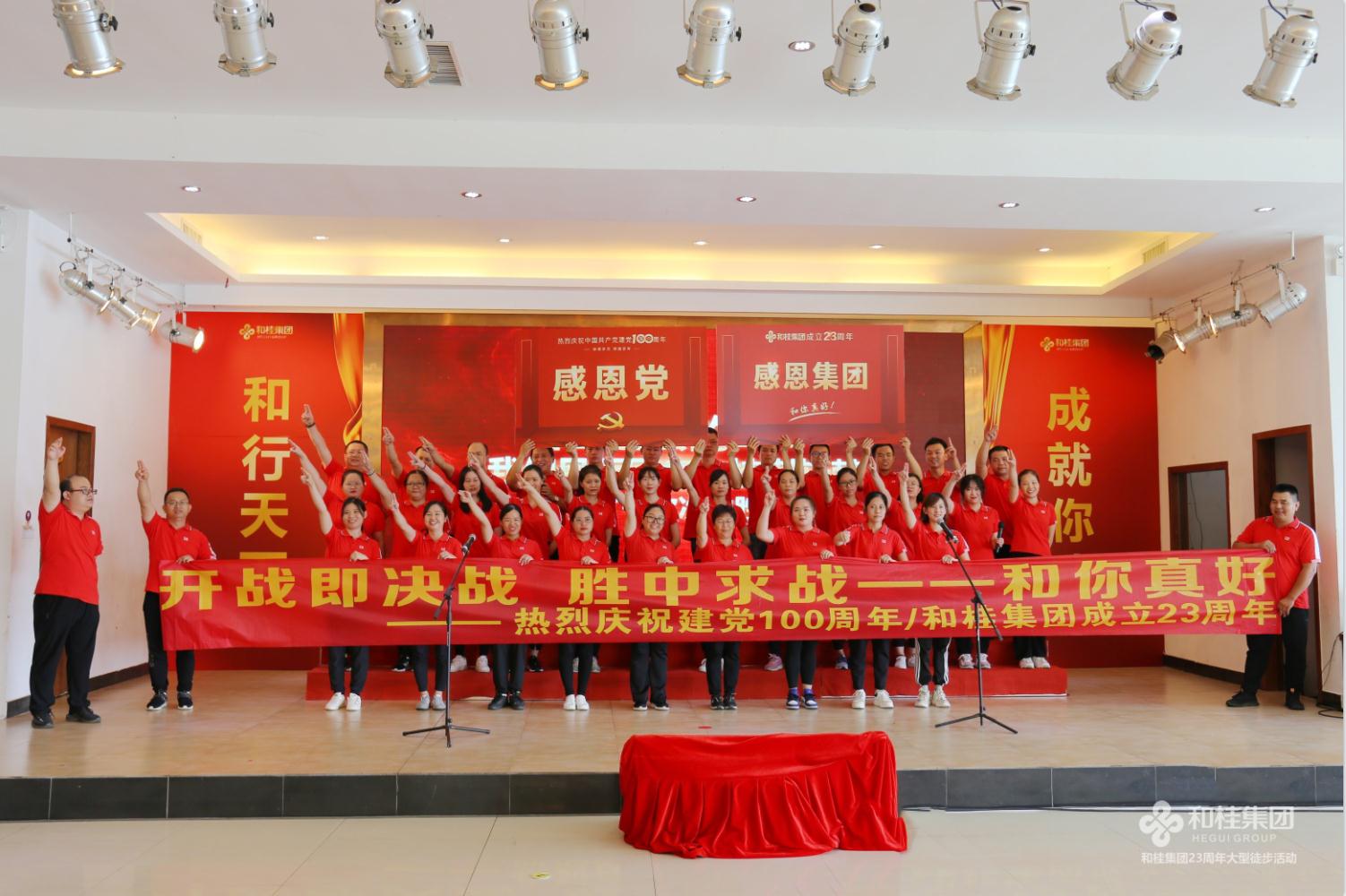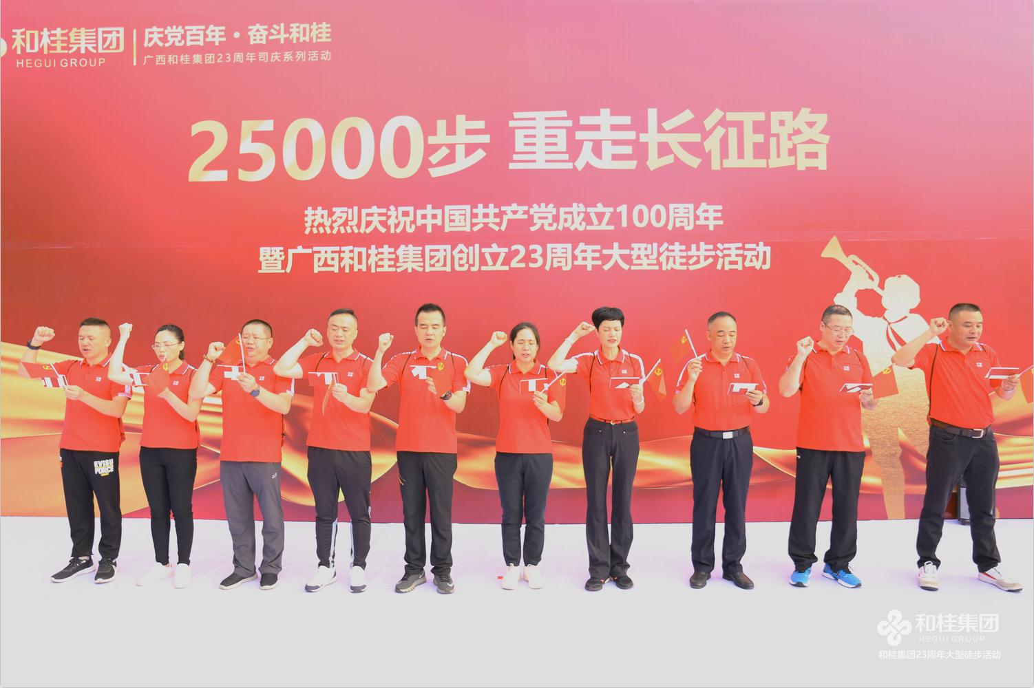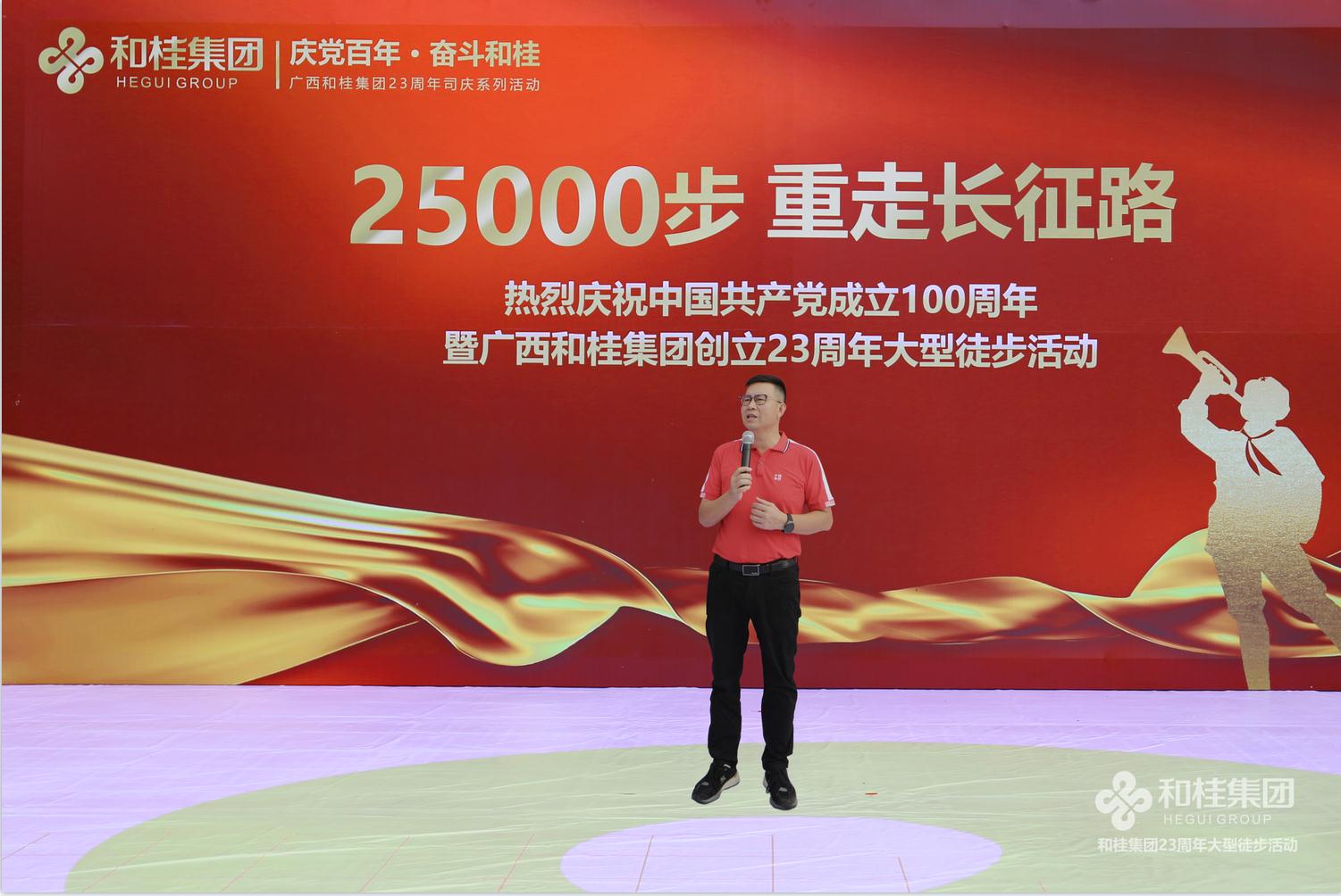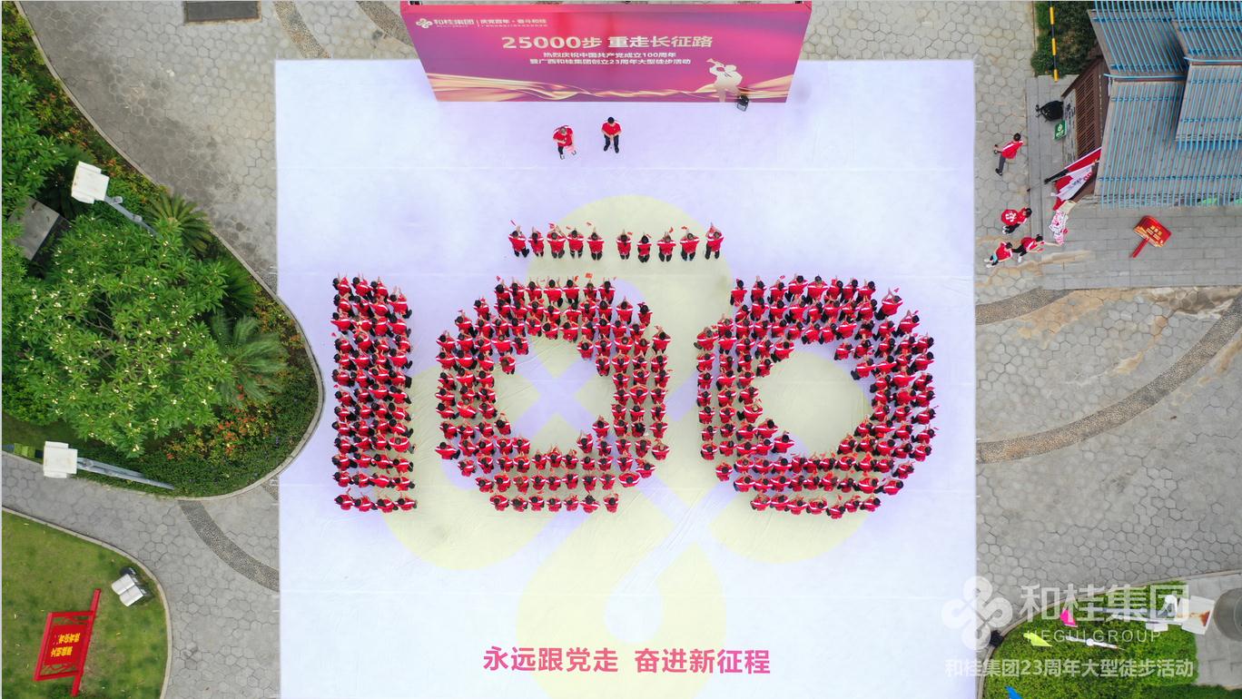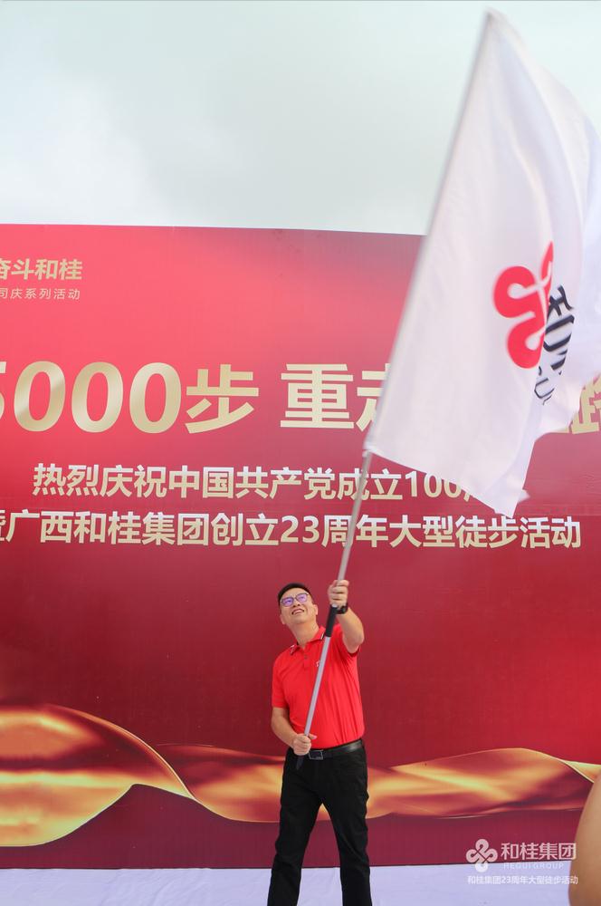 在建黨100周年之際,和桂集團喜迎創(chuàng)立23周年司慶。6月26日,“25000步·重走長征路”2021和桂集團23周年司慶徒步活動盛大舉行。和桂集團董事長黃偉文,攜300名和桂家人集結邕江河畔,用一場酣暢淋漓的25000步徒步之旅,傳承長征精神,凝聚奮進力量。
