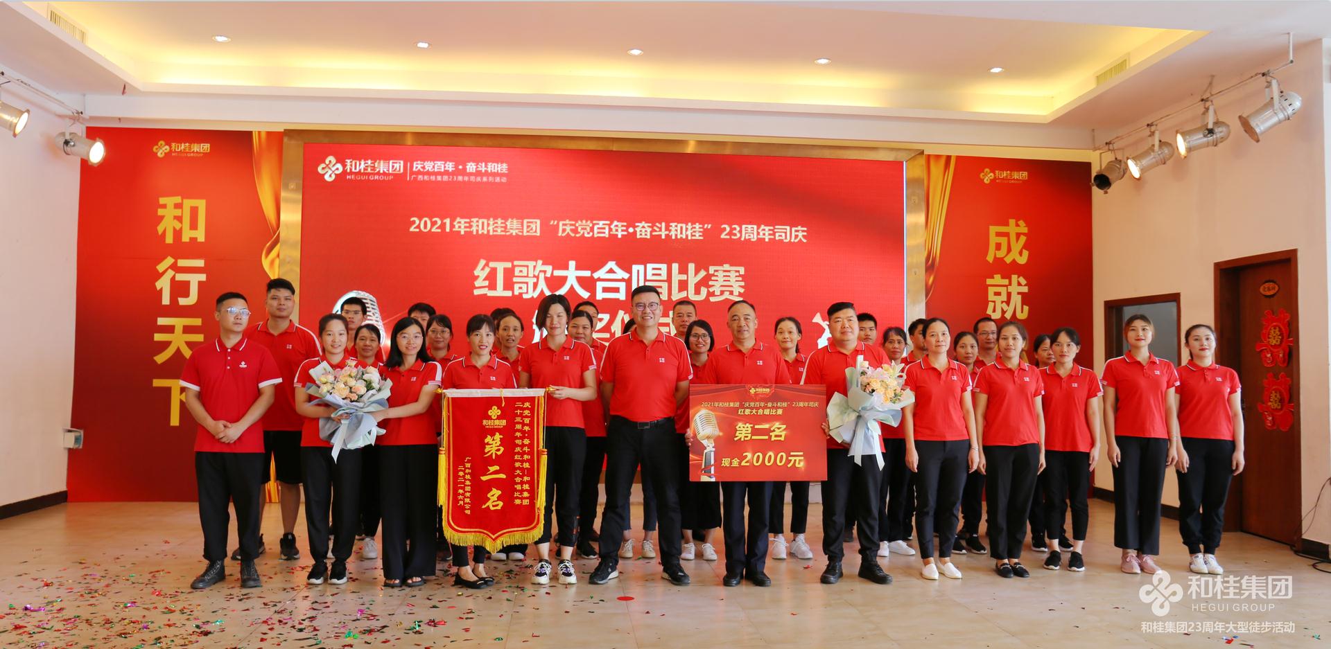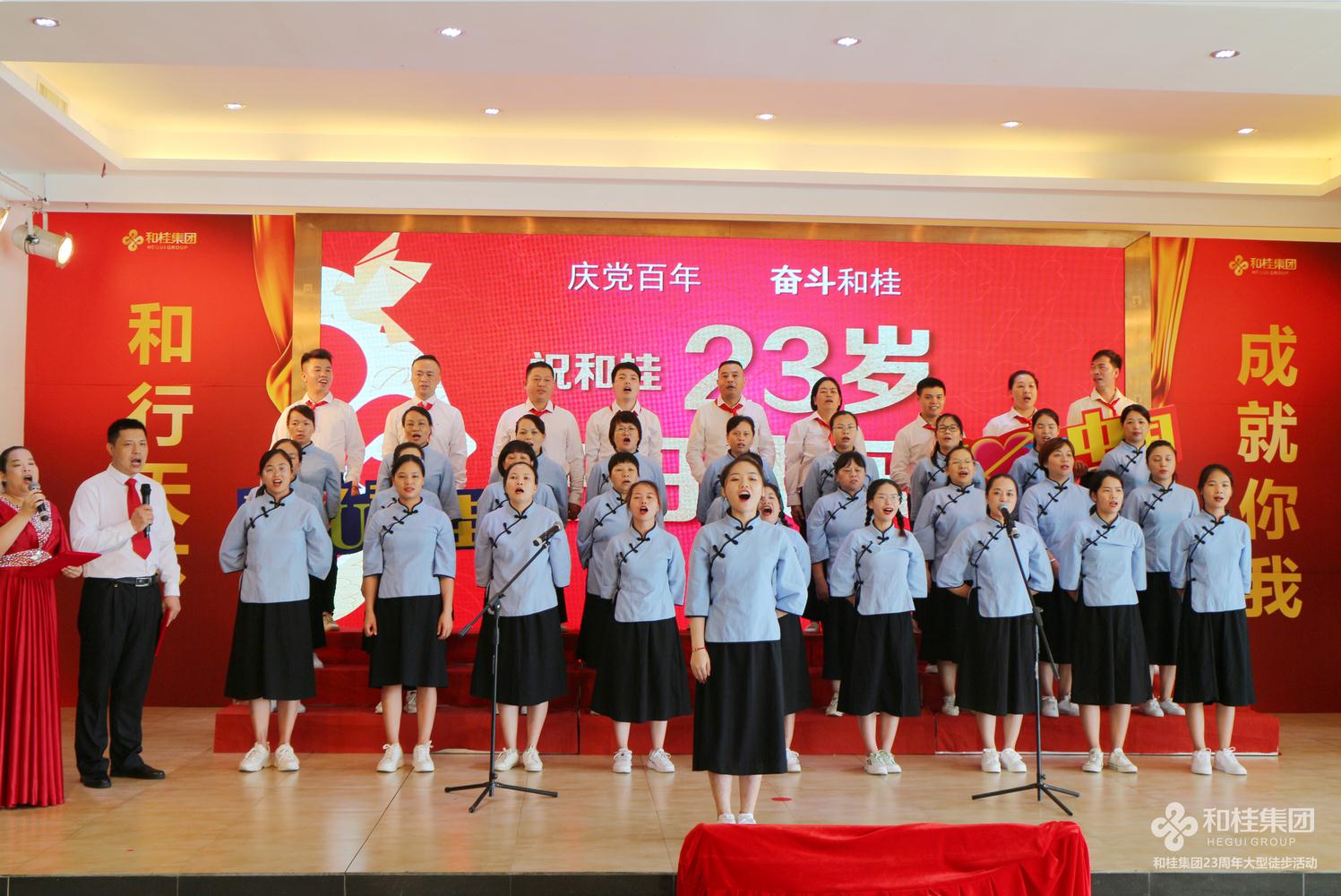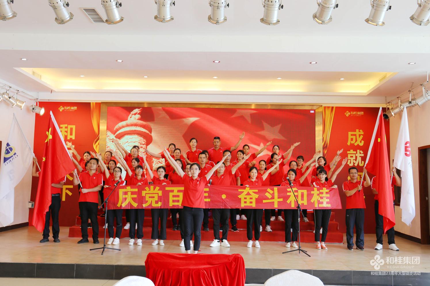 司慶活動在一首高亢有力的大合唱《團結就是力量》歌聲中圓滿結束,和桂集團23年奮斗歷程始終如一,團結一心,眾志成城,一步一個腳印創(chuàng)造一個個奇跡。奮進新起點,踏上新征程,和桂集團將繼續(xù)秉承“誠信、創(chuàng)新、感恩、共贏”的企業(yè)價值觀,堅持黨旗領航,實干興企,以慶黨百年為起點,齊心奮斗,打造百年和桂砥礪前行!