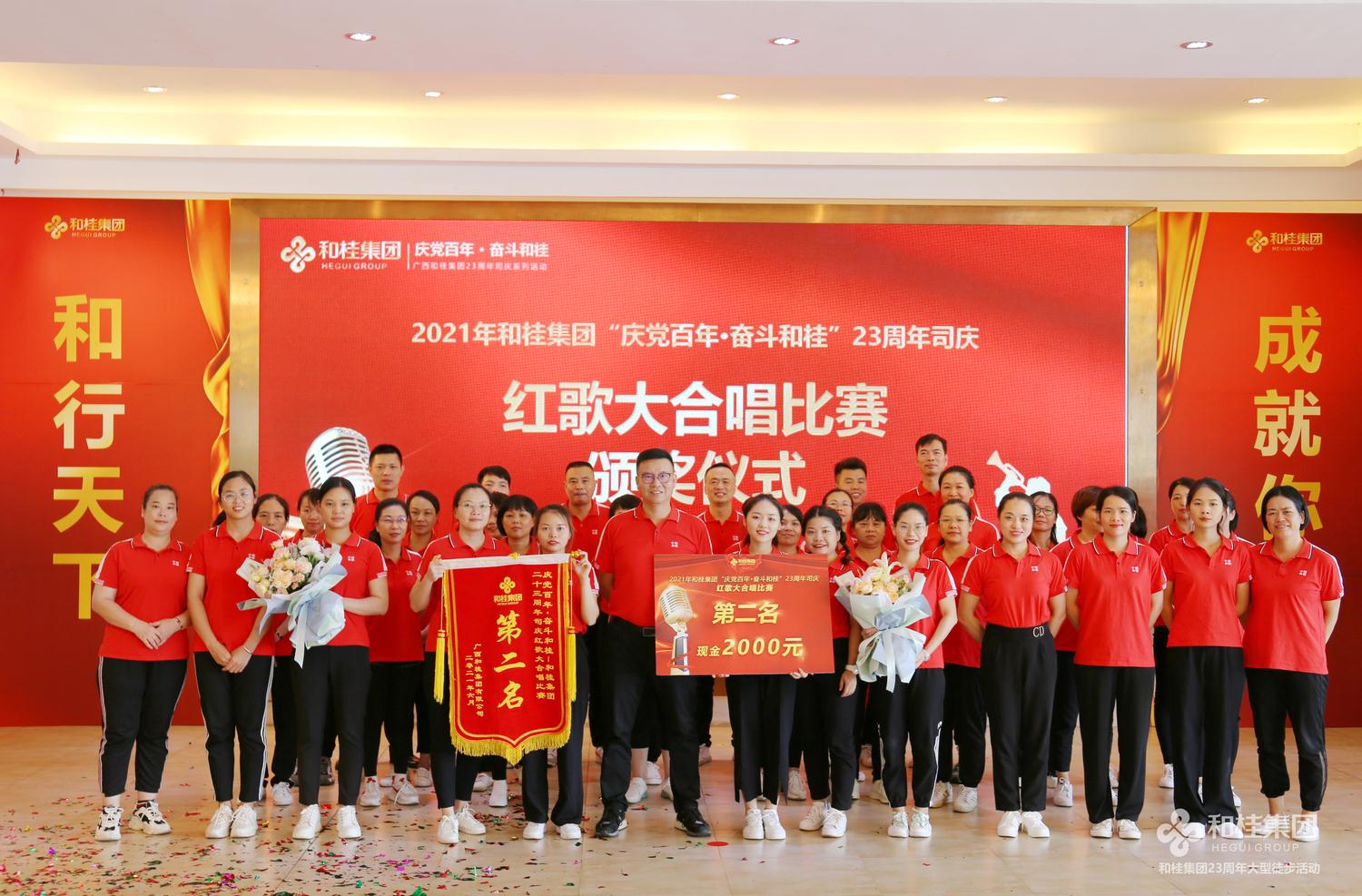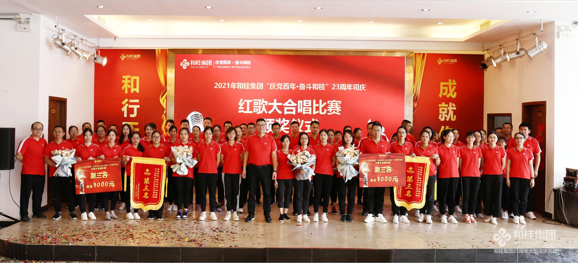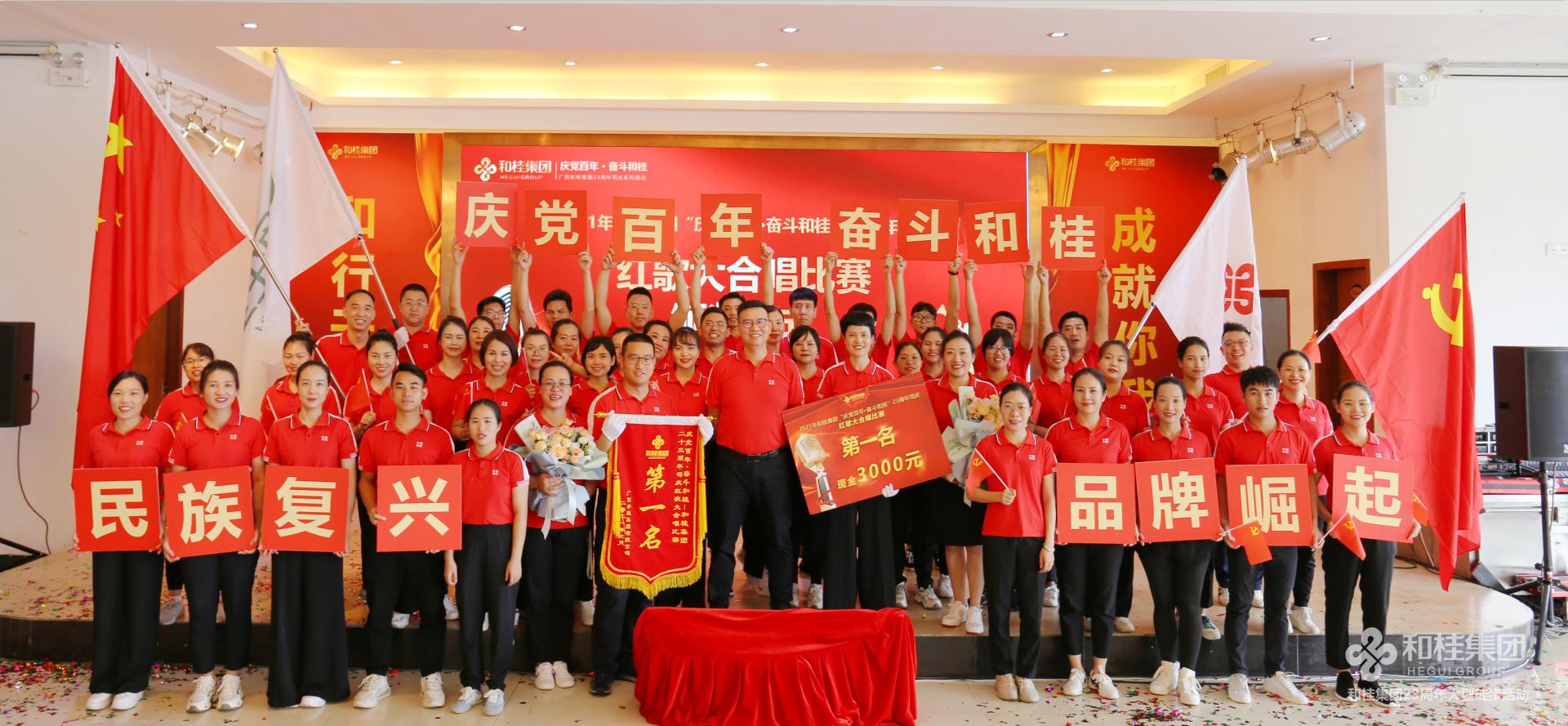 司慶活動在一首高亢有力的大合唱《團結就是力量》歌聲中圓滿結束,和桂集團23年奮斗歷程始終如一,團結一心,眾志成城,一步一個腳印創(chuàng)造一個個奇跡。奮進新起點,踏上新征程,和桂集團將繼續(xù)秉承“誠信、創(chuàng)新、感恩、共贏”的企業(yè)價值觀,堅持黨旗領航,實干興企,以慶黨百年為起點,齊心奮斗,打造百年和桂砥礪前行!