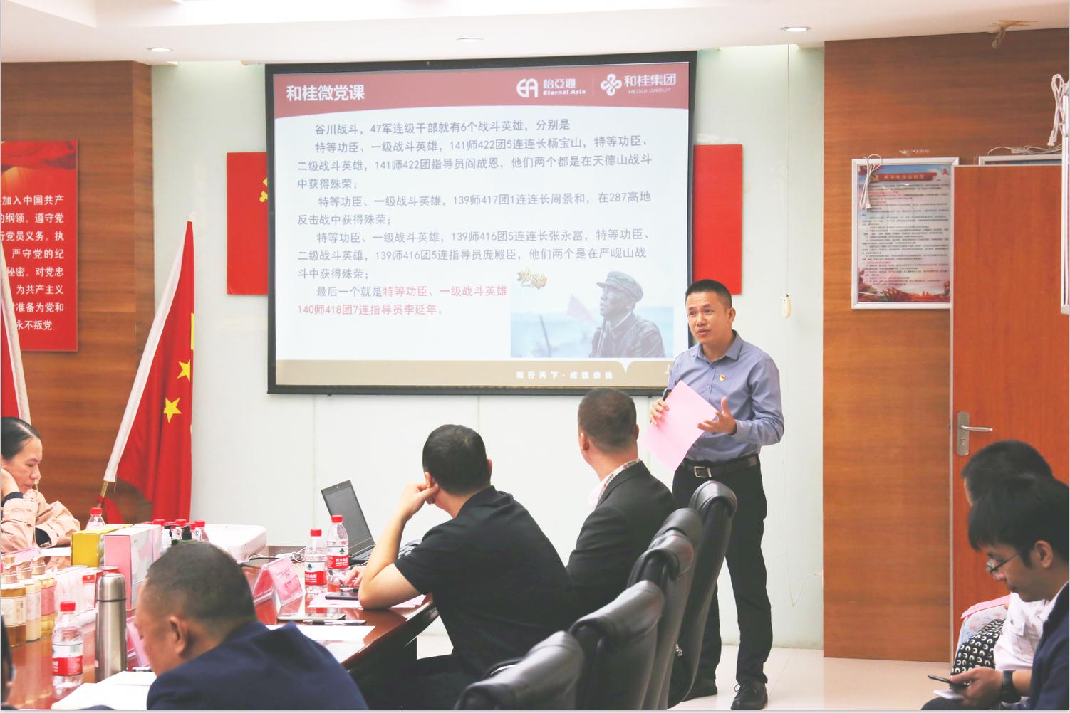 在和桂集團黨支部活動室,和桂集團黨支總書記周云,給全體黨員帶來了一堂微黨課。微黨課結(jié)合當前熱播劇《功勛》,向大家分享了“共和國勛章”獲得者——李延年愛國抗戰(zhàn)的英雄事跡,李延年勇于擔當、英勇無畏的奉獻精神,深深觸動著現(xiàn)場的每一個黨員,決心不記初心,牢記使命,立足崗位,把“我為群眾辦實事”實踐活動推向深入,真干實干,為群眾辦實事。