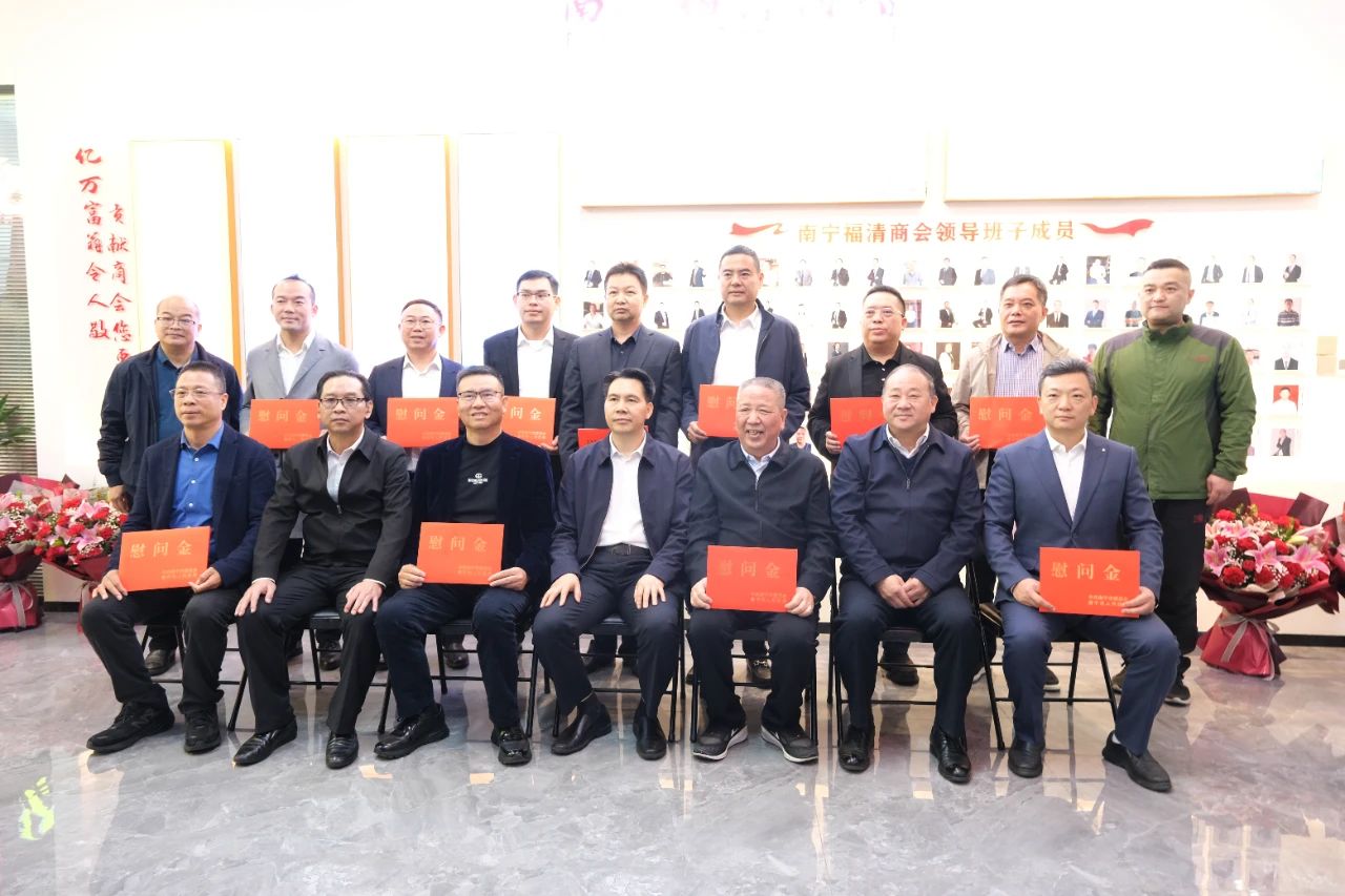 最后,韋江副市長代表南寧市委、市政府向10家商會、企業(yè)以及6名優(yōu)秀企業(yè)家發(fā)放了慰問金,并與各位代表們進(jìn)行合影留念。